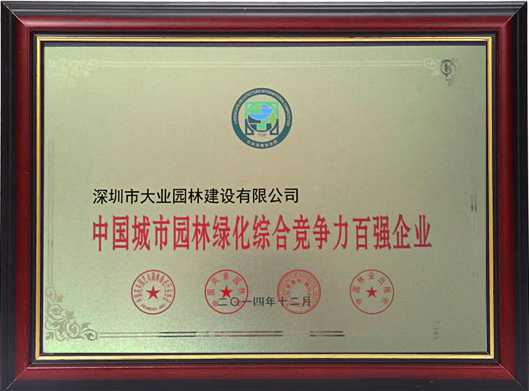 中國(guó)城市園林綠化綜合競(jìng)爭(zhēng)力百?gòu)?qiáng)企業(yè)